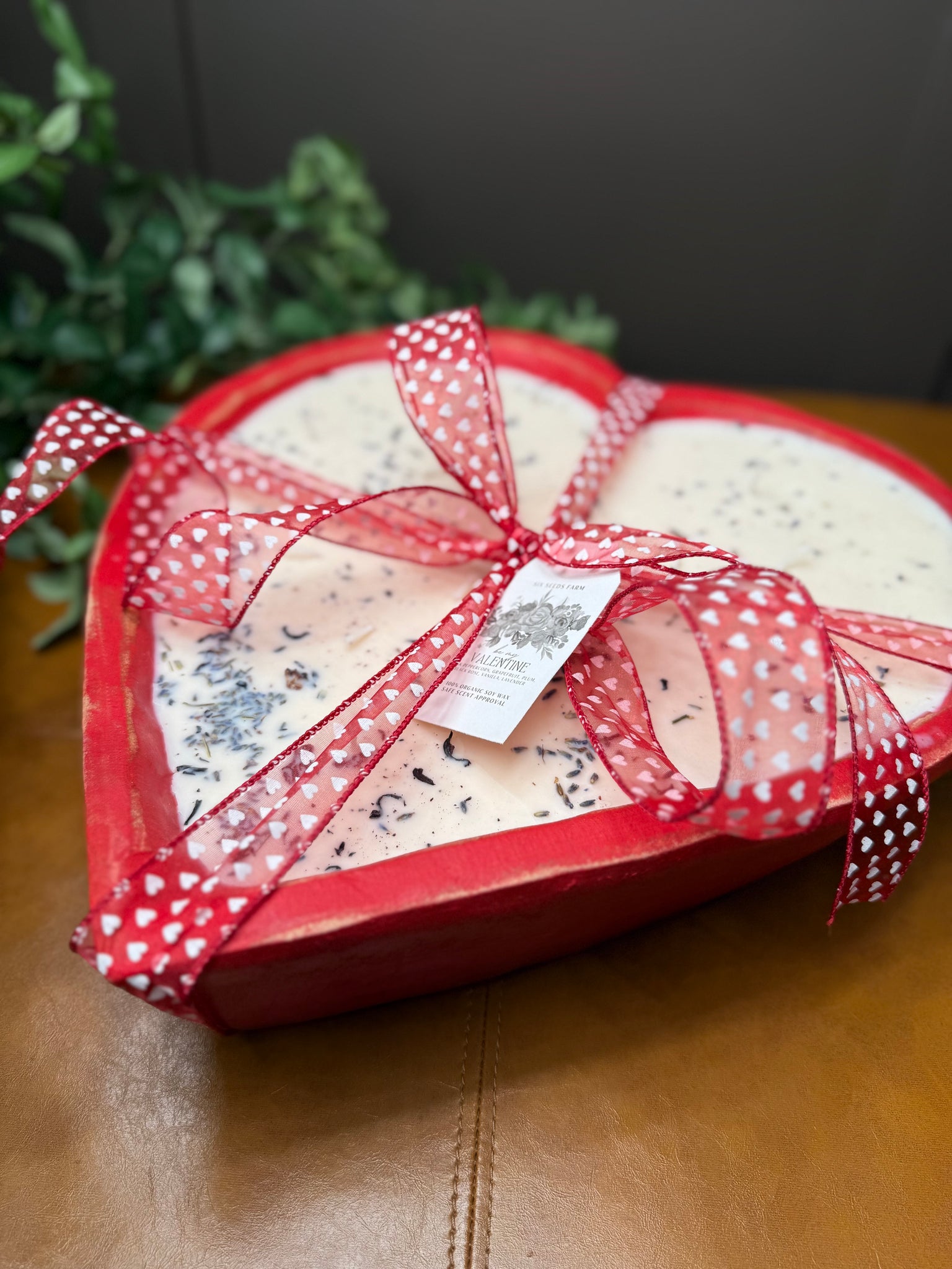 Make a bold statement of love with My Valentine, a stunning 15-pound heart-shaped candle, hand poured and hand decorated by Six Seed Farm. Crafted as both a centerpiece and a sensory experience, this candle is designed to fill a room with romance, comfort, and elegance.